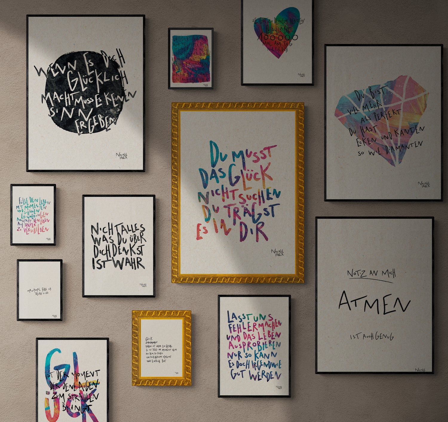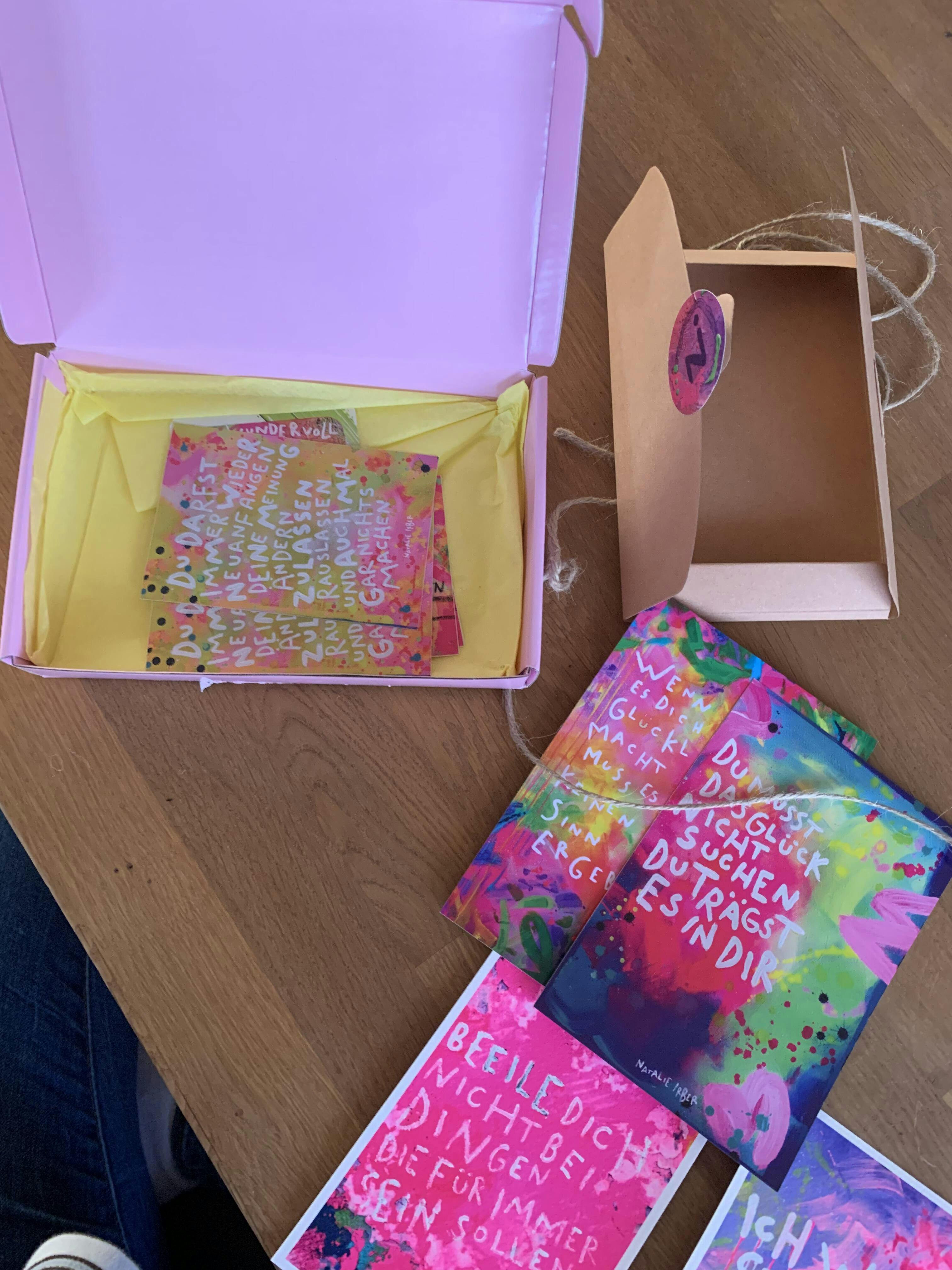All das, mache ich hier selbst, vom Malen bis hin zur Verpackung. Es ist mir wichtig, dass die Produkte, die von mir kommen, nicht unzählige Versandwege hinter sich haben. Es soll auch immer etwas Persönliches von mir sein, etwas, dass nicht nur mit Herz gestaltet wurde, sondern etwas, das bis ins letzte Detail durch meine eigenen Hände ging. Alles in meinem Shop, kommt in kleinen Auflagen bis zu 250 Stück, so wird es immer etwas Besonderes für Dich bleiben.