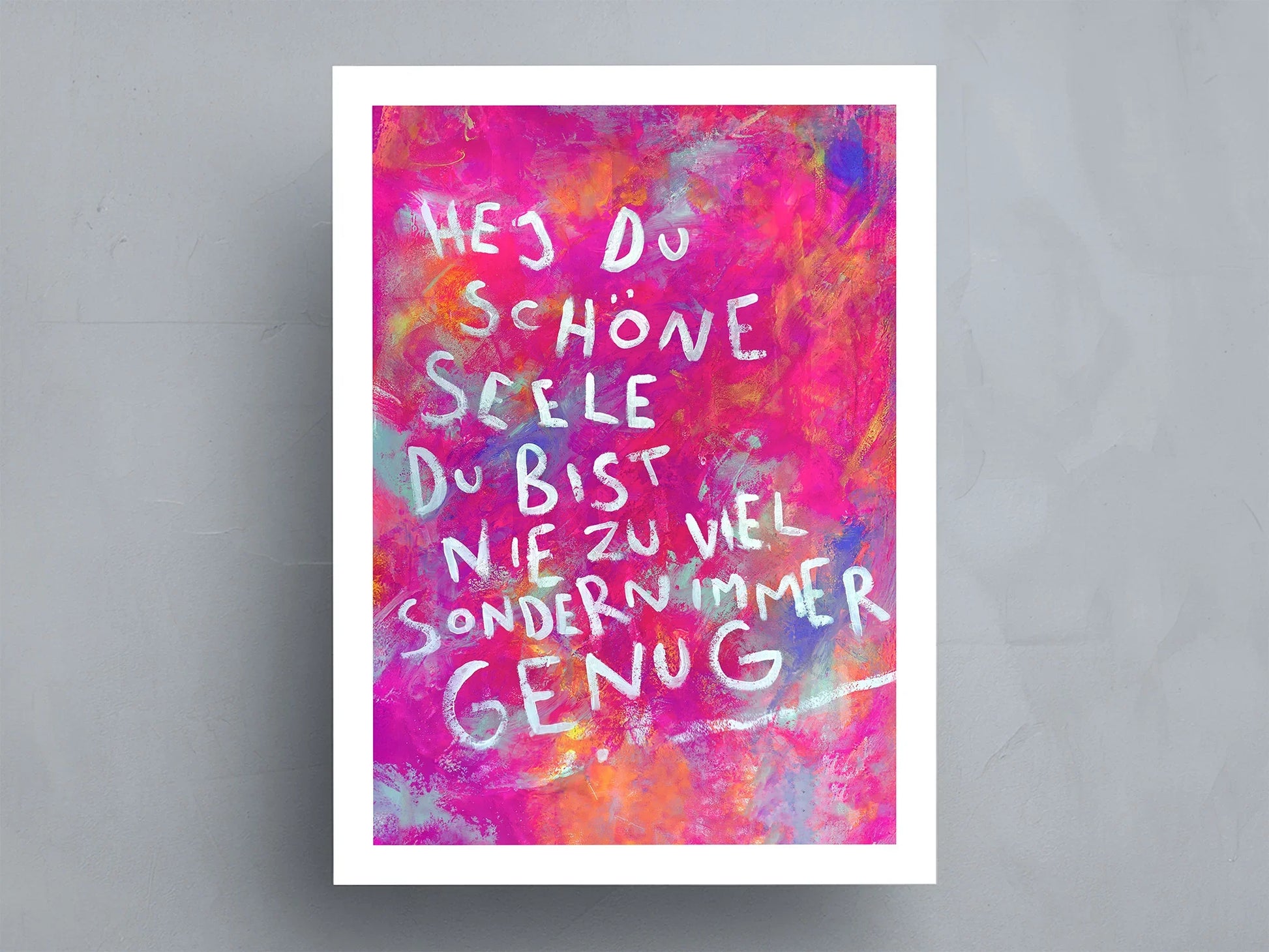 Jedes Kunstwerk, das du in meinen Händen hältst, ist von Anfang bis Ende ein Stück meiner selbst: Ich male, drucke, verpacke und verschicke jeden Print persönlich – mit viel Liebe zum Detail und einer Leidenschaft, die in jedem Schritt spürbar ist. Als kleines Dankeschön lege ich zu jeder Bestellung immer eine Postkarte und einen Sticker bei, um dir ein Lächeln zu schenken.