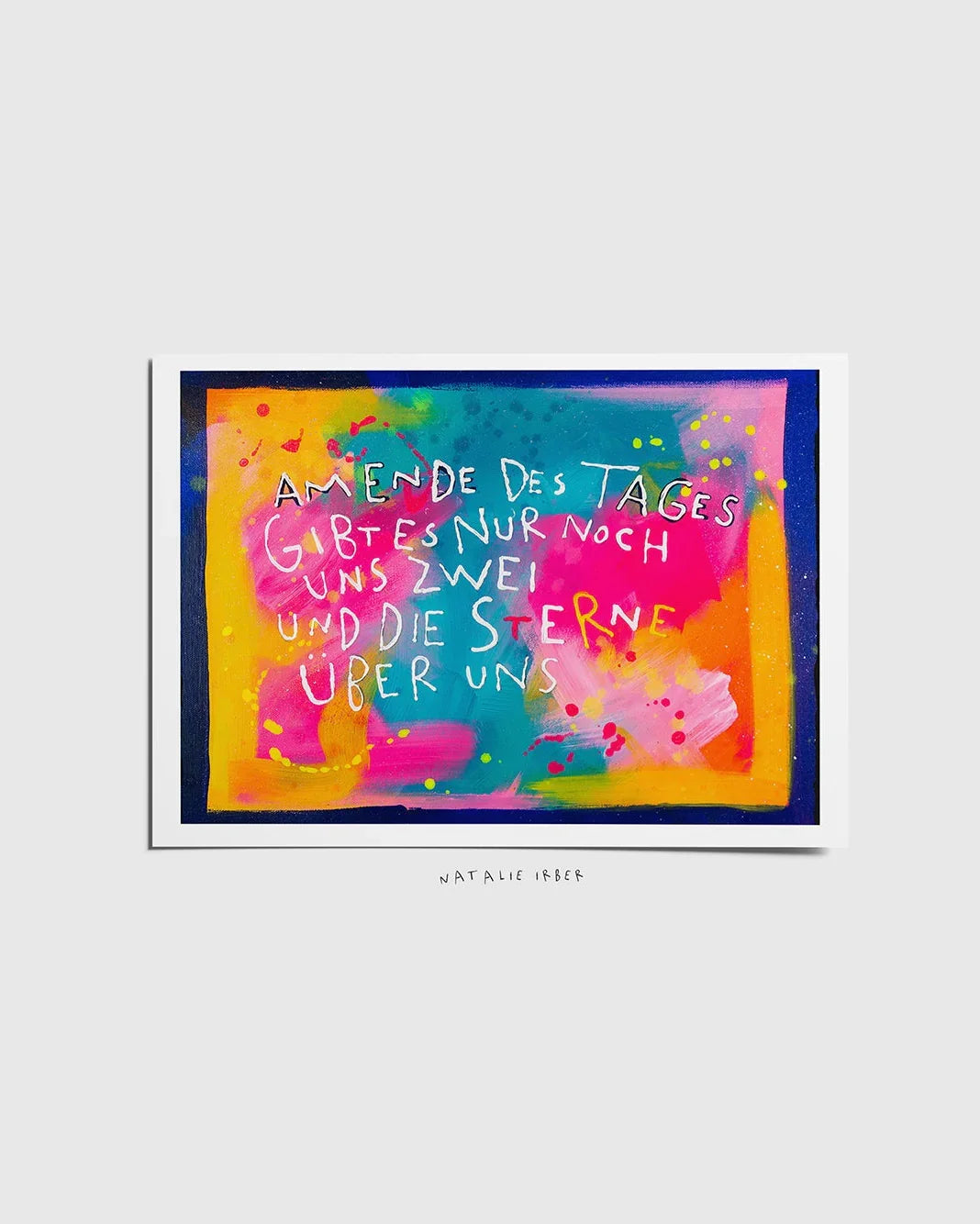 Es ist mehr als nur eine Postkarte.Feines Papier, leuchtende Farben, echte Worte.Zum Behalten, Verschicken oder Verschenken.Mit Liebe gedruckt, geschnitten & verpackt.