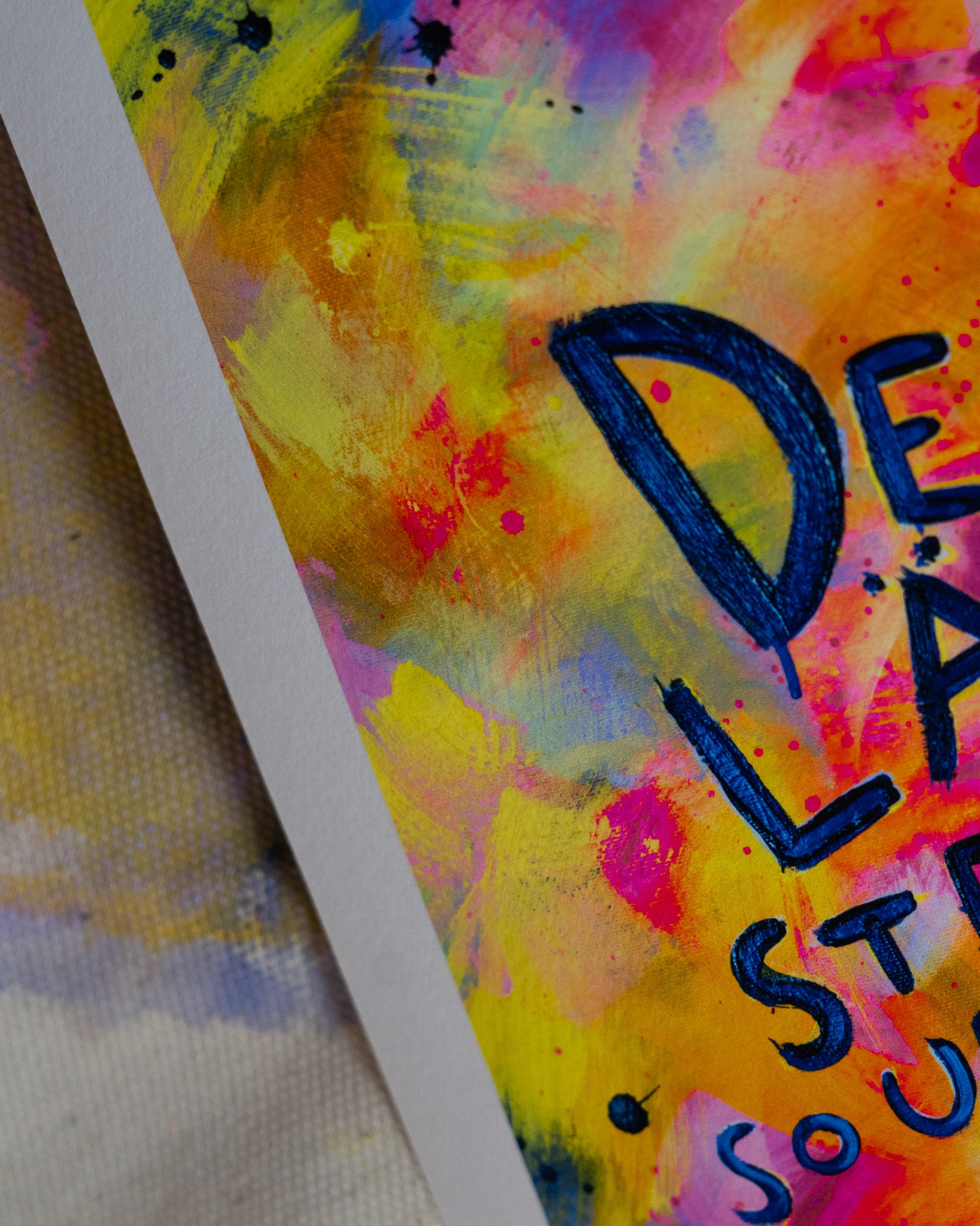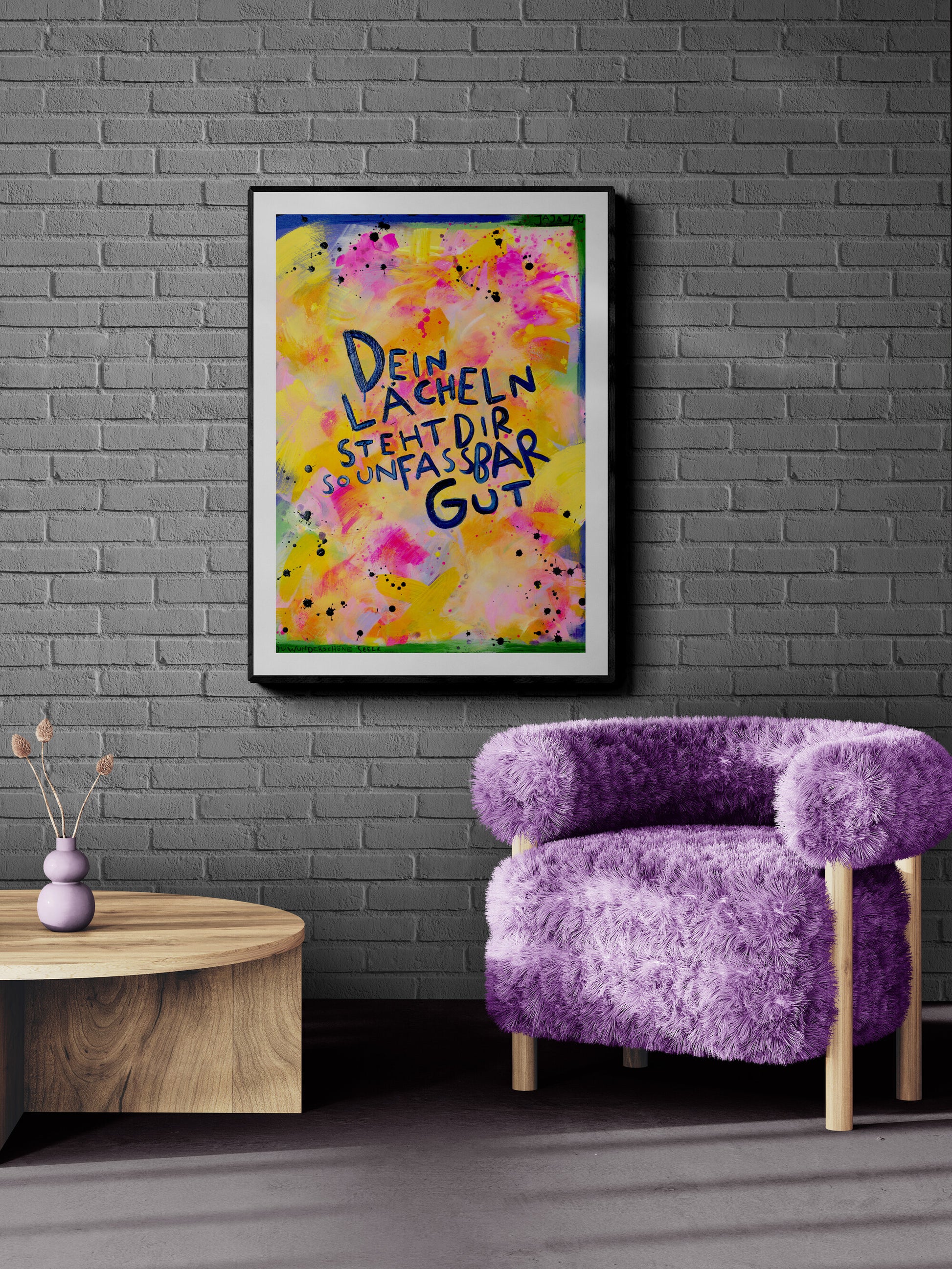 Jedes Kunstwerk, das du in meinen Händen hältst, ist von Anfang bis Ende ein Stück meiner selbst: Ich male, drucke, verpacke und verschicke jeden Print persönlich – mit viel Liebe zum Detail und einer Leidenschaft, die in jedem Schritt spürbar ist. Als kleines Dankeschön lege ich zu jeder Bestellung immer eine Postkarte und einen Sticker bei, um dir ein Lächeln zu schenken.