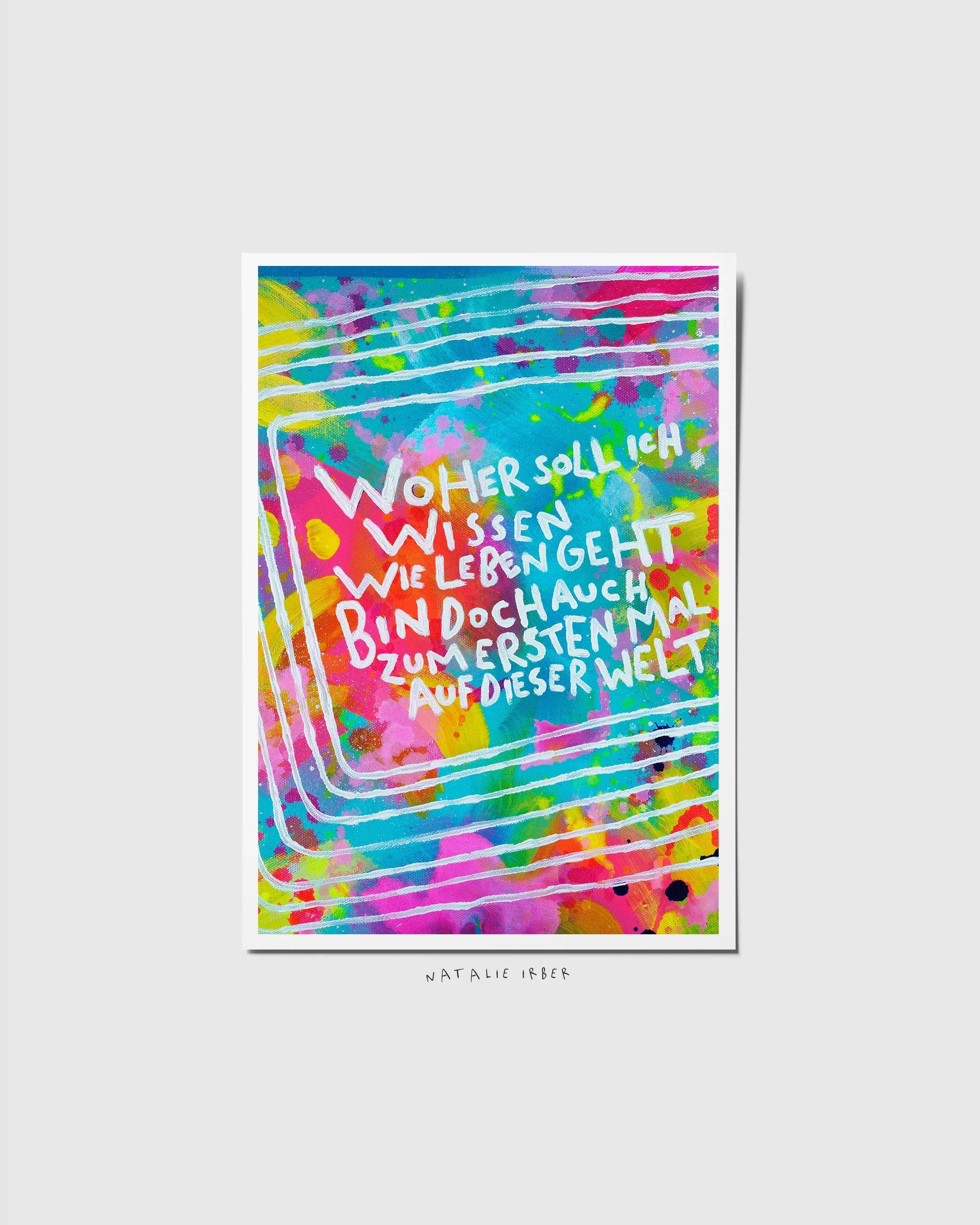 Es ist mehr als nur eine Postkarte.Feines Papier, leuchtende Farben, echte Worte.Zum Behalten, Verschicken oder Verschenken.Mit Liebe gedruckt, geschnitten & verpackt.