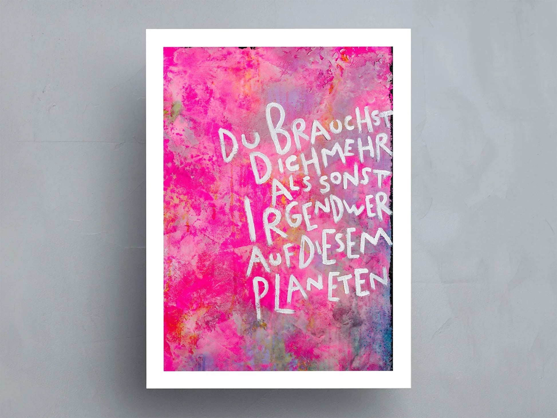 Jedes Kunstwerk, das du in meinen Händen hältst, ist von Anfang bis Ende ein Stück meiner selbst: Ich male, drucke, verpacke und verschicke jeden Print persönlich – mit viel Liebe zum Detail und einer Leidenschaft, die in jedem Schritt spürbar ist. Als kleines Dankeschön lege ich zu jeder Bestellung immer eine Postkarte und einen Sticker bei, um dir ein Lächeln zu schenken.