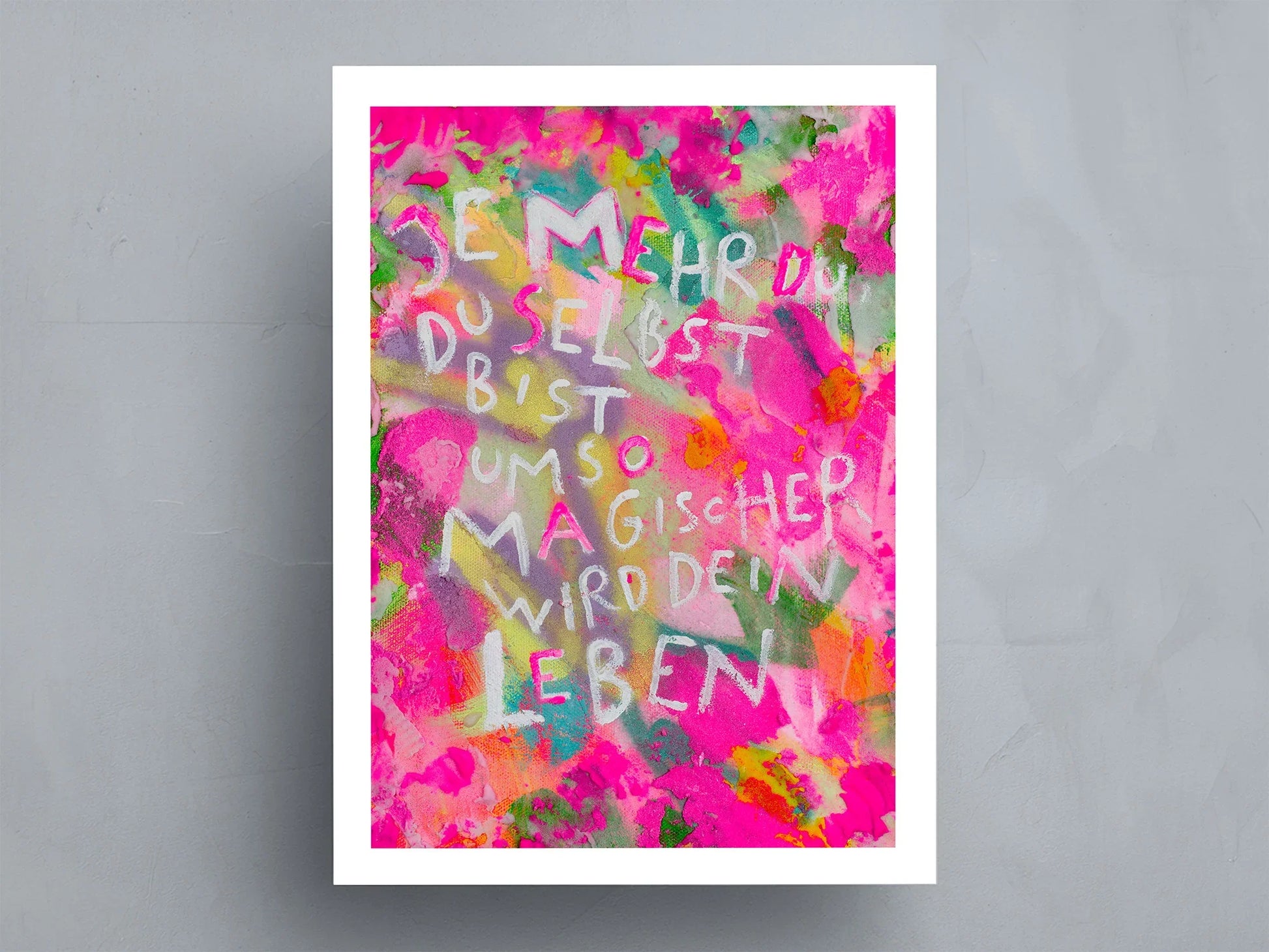 Jeder Fine Art Print (Gliclée Druck) wird von mir persönlich mit dem Canon PRO-1000 und dem Canon Pro-2000 gedruckt, einem professionellen Drucker, der mit einem außergewöhnlichen 12-Farb-Tintensystem arbeitet. Im Gegensatz zu herkömmlichen Druckern, die meist nur vier Farben nutzen, ermöglicht diese Technologie eine beeindruckende Farbvielfalt, Tiefe und Detailgenauigkeit. Dadurch werden feinste Nuancen und lebendige Töne in meinen Kunstwerken perfekt wiedergegeben, sodass jeder Print die emotionale Kraft und Intensität des Originals einfängt.